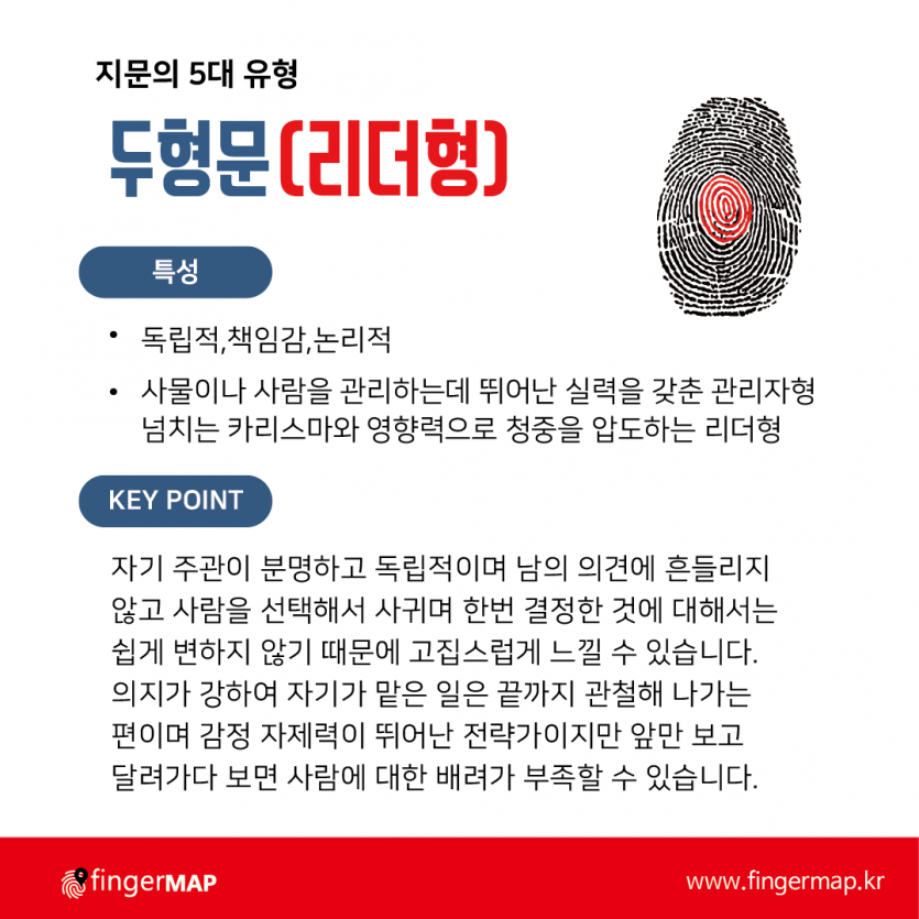 핑거맵지문의 특성을 통하여 알아보는 성격적 특징 4 (리더형)