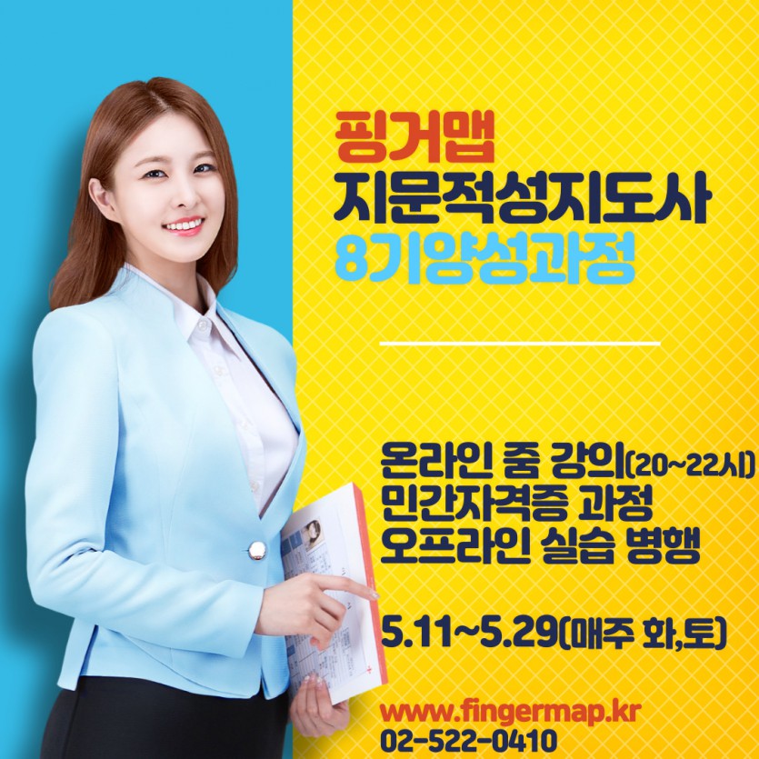 지문적성지도사 양성과정(2급) 8기 과정이 2021년05/11~05/29까지 진행될 예정입니다.