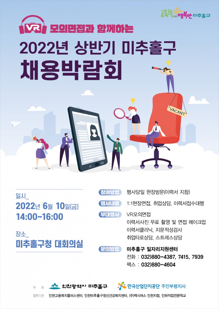 "VR모의면접과 함께하는" 2022년 상반기 미추홀구 채용박람회가 개최되며,