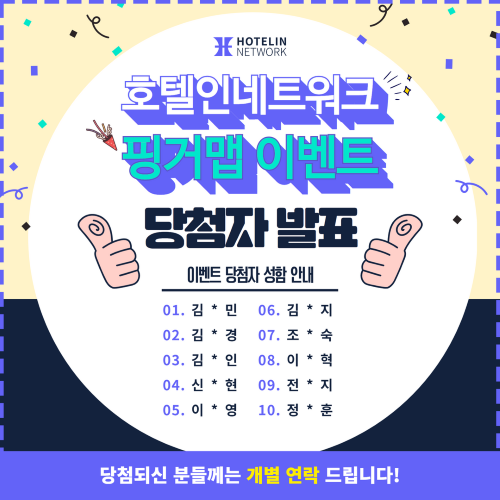 알림호텔인 네트워크와 핑거맵 이벤트 당첨자 발표