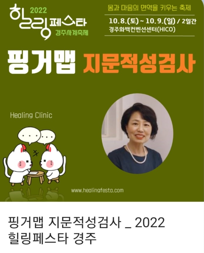 이시형박사, 개그맨 김영철 등 명사들의 강의와 함께 핑거맵 시스템을 활용한 지문적섬검사를 통한