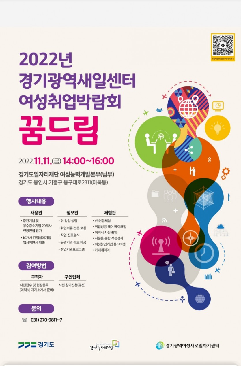 2022년 경기광역새일센터여성취업박람회가 경기도일자리재단 여성능력개발본부에서 개최되며,