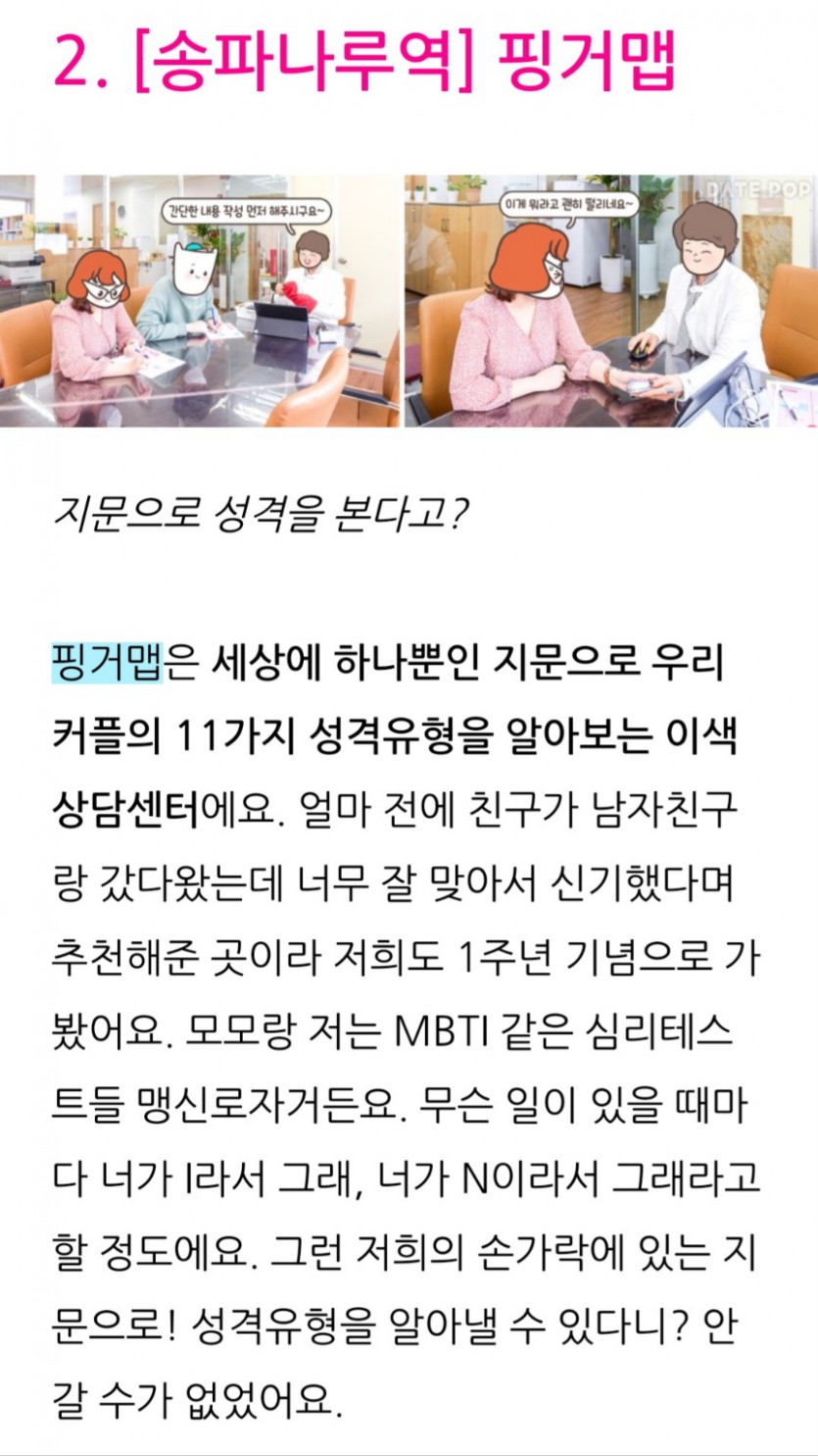 소식잠실 이색데이트 코스 2위에 핑거맵 선정 [데이트팝]