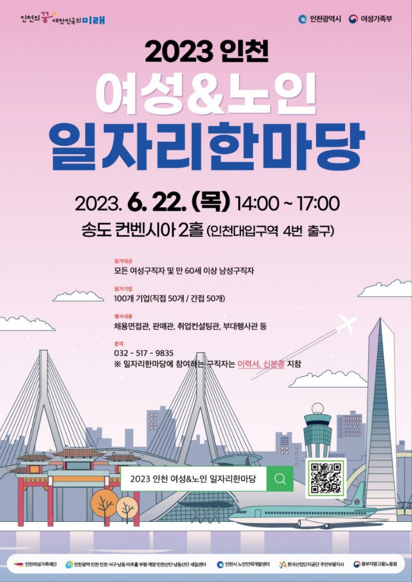 2023 인천 여성&노인 일자리한마당이 취업을 준비하는 구직자를 위해 송도컨벤시아에서 개최되며,