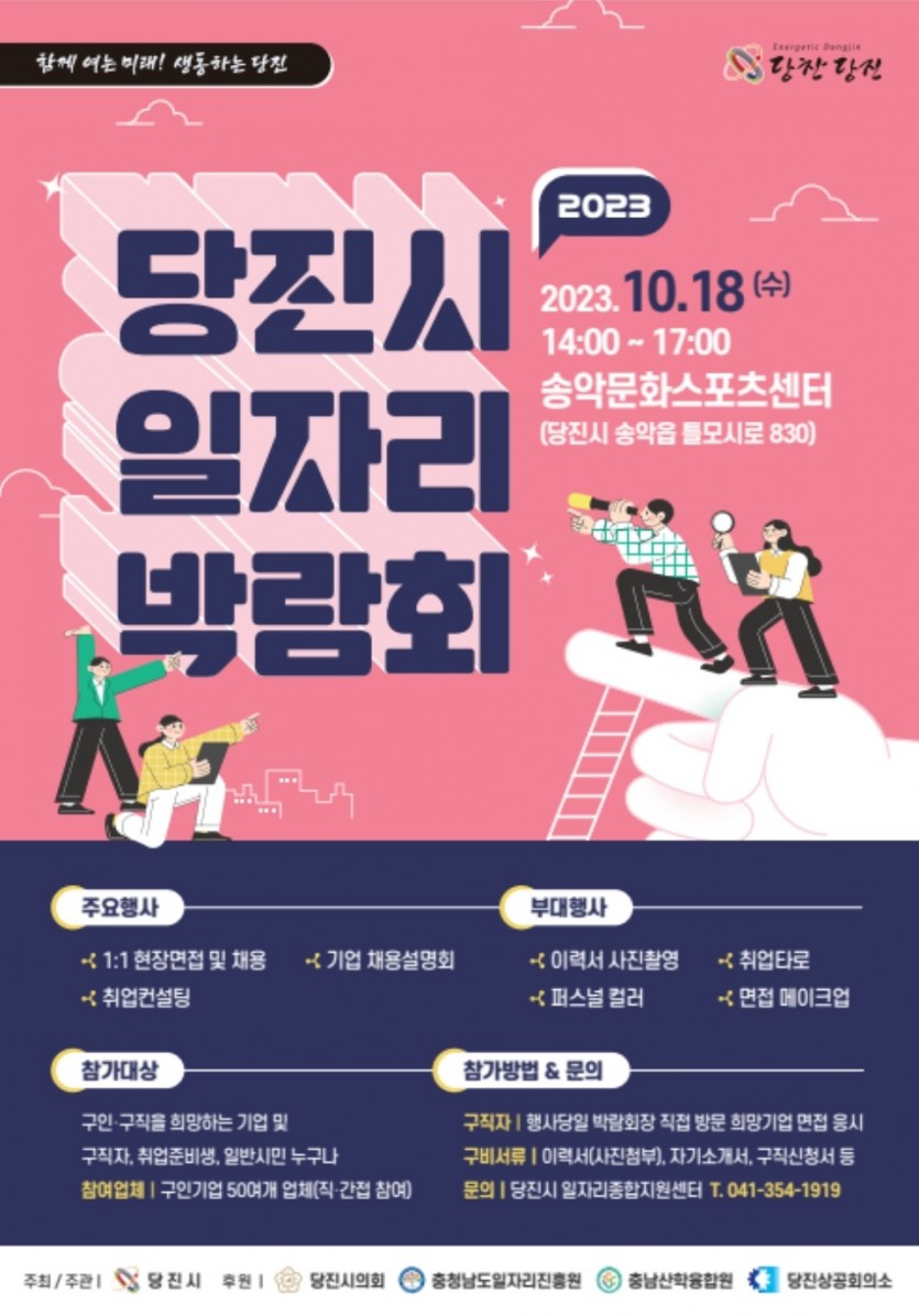 당진시에서 주관하는 2023년 당진시 일자리박람회가 송악문화스포츠센터에서 진행되며,