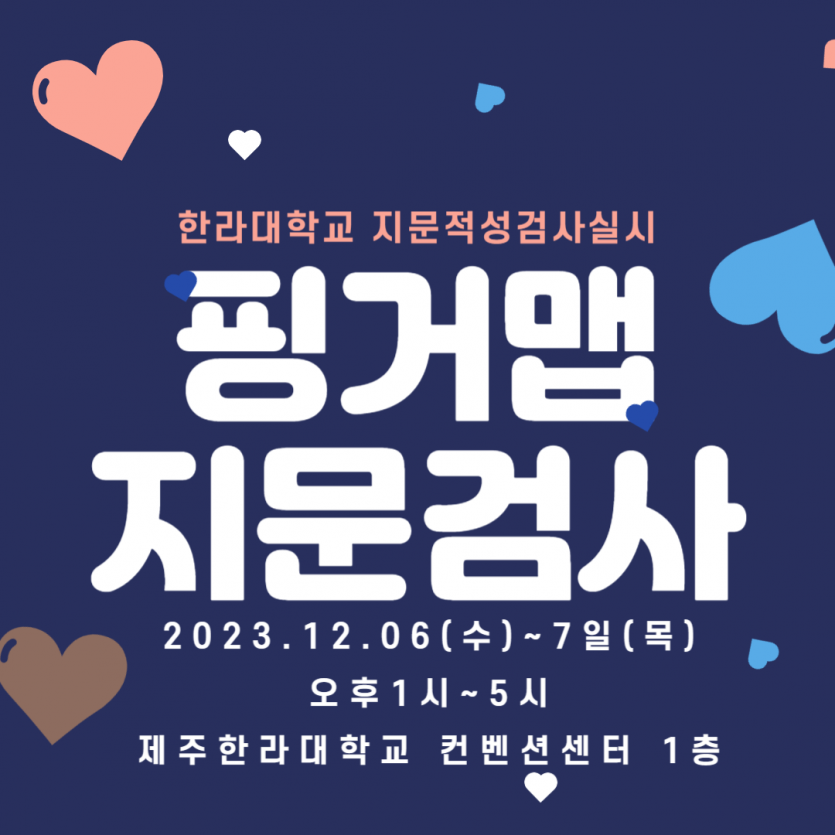 핑거맵 시스템을 활용한 지문적성검사가 실시될 예정이오니 한라대학교 학생들의 많은 참여 부탁드립니다~