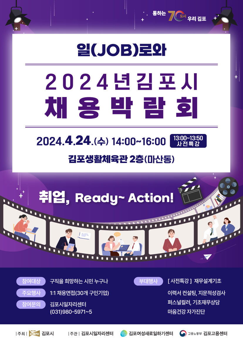 김포시가 주최하고 김포시일자리센터가 주관하는 구직을 희망하는 김포시민 누구나 참여할 수 있는 2024년 김포시 채용박람회가