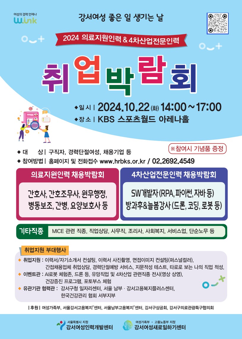 2024 의료지원인력 & 4차산업전문인력 취업박람회가 KBS 스포츠월드 아레나홀에서 개최됩니다.