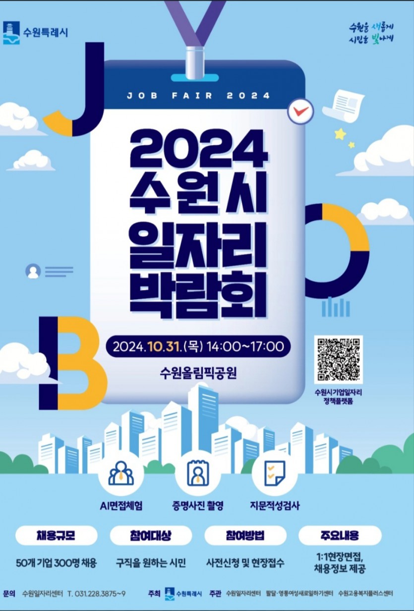 2024 수원시 일자리박람회가 수원올림픽공원에서 개최됩니다.