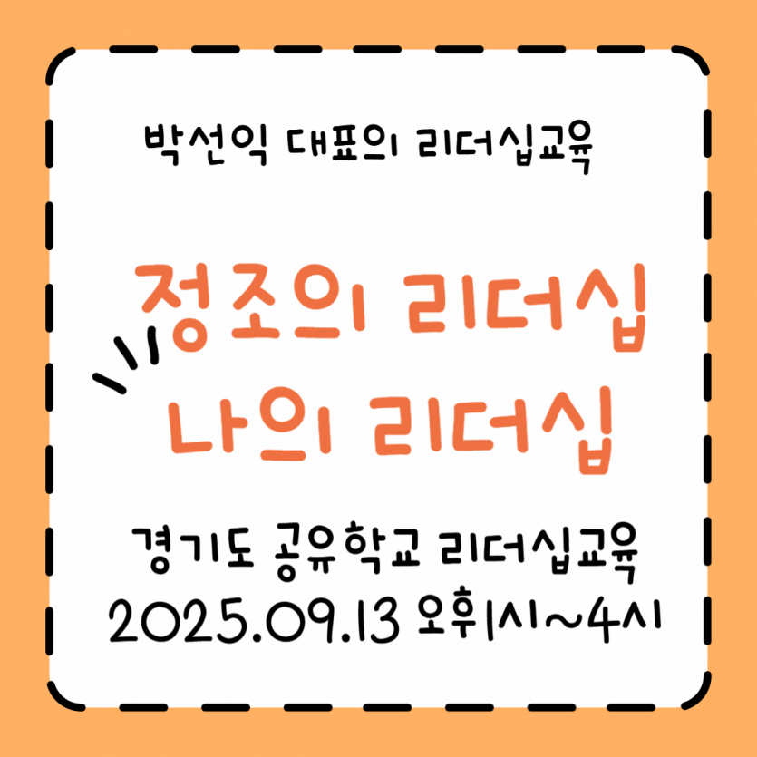 경기도 공유학교에서 진행되는 [정조의 리더십] 과정 중 [우리의 리더십]에 대한 강의 일정을 알려드립니다.